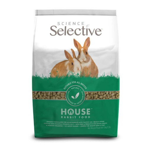 Science Selective House Rabbit has been uniquely formulated for house bunnies. With Timothy hay grass and thyme it provides and array of forage to reflect natural foraging behavior. Fortified with essential vitamins A and D, 22% crude fiber and balanced calcium: phosphorus so you can be sure you are providing your rabbits with the finest quality nuggets that will help support wellbeing and promote vitality. That's why vets recommend Supreme Science Selective.